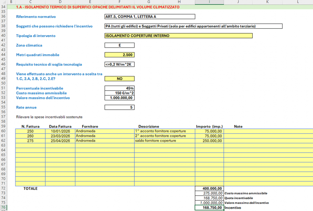 Il file consente di quantificare l’incentivo fiscale per diverse tipologie di intervento: