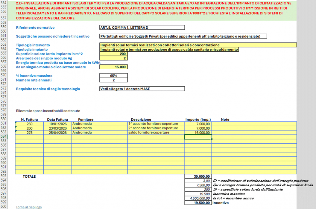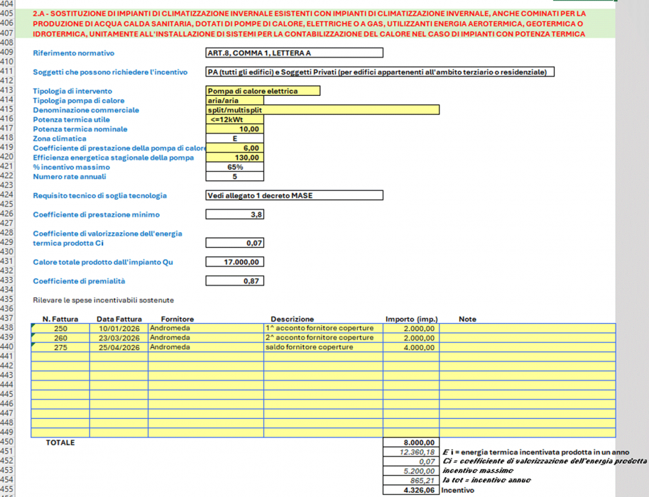 È uno strumento operativo rivolto a professionisti, tecnici, consulenti energetici e pubbliche amministrazioni, utile per stimare il contributo economico spettante per interventi di efficientamento energetico e produzione di energia termica da fonti rinnovabili di piccole dimensioni.