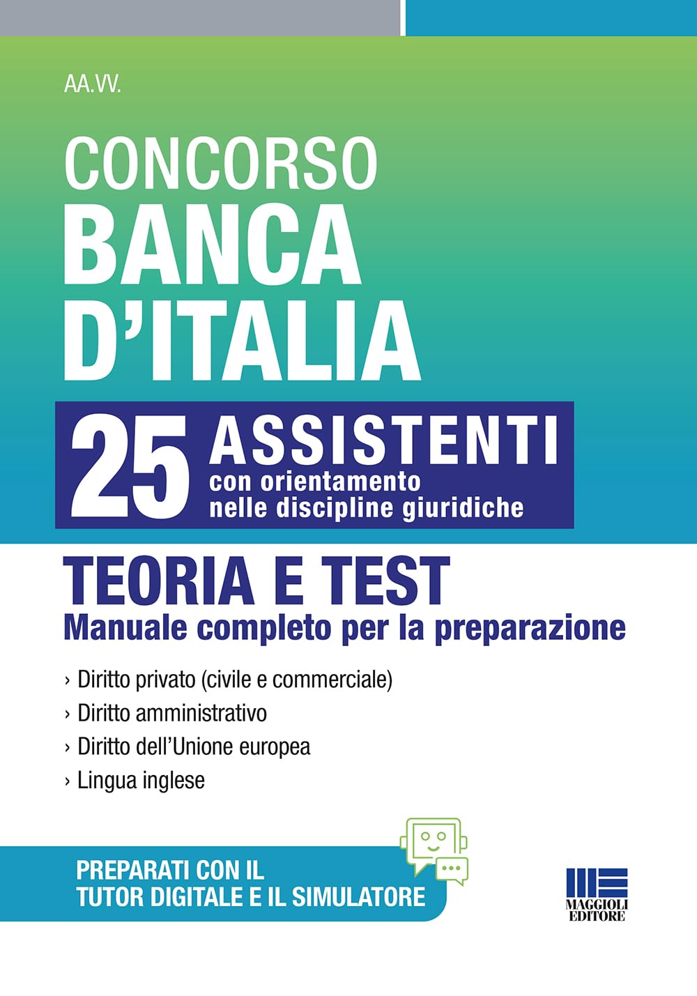 Si consiglia per la preparazione il volume concorso Banca d'Italia 25 assistenti- Teoria e Test. Manuale di carta - 600 pagine .