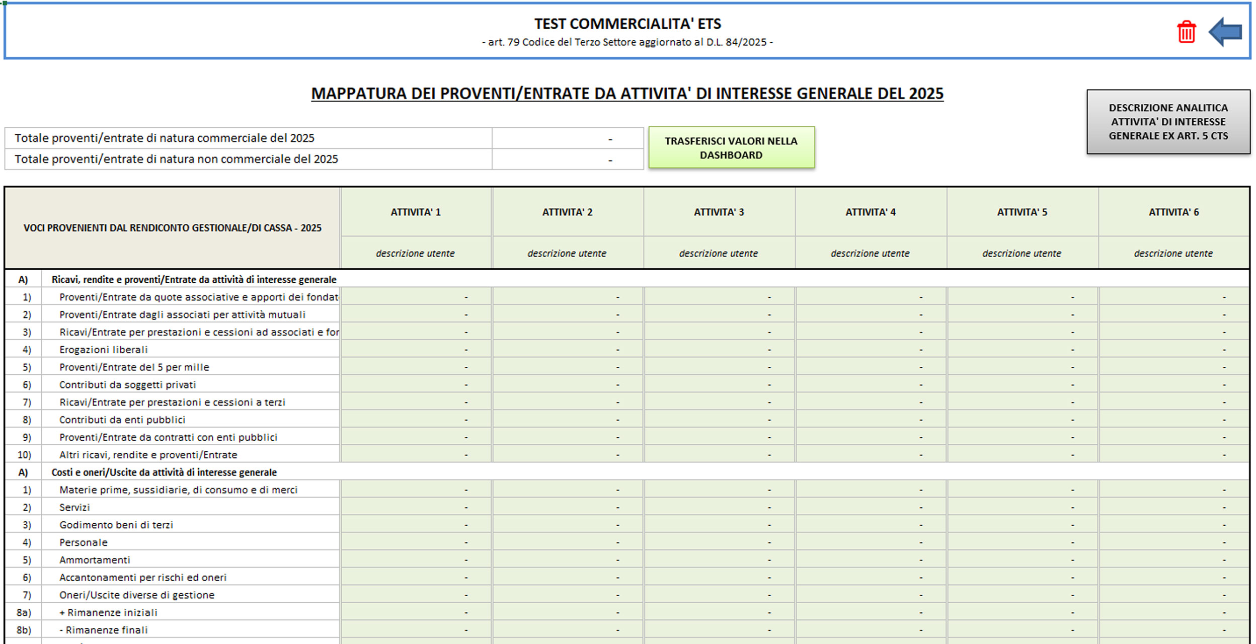 Per supportare gli Enti del Terzo Settore (ETS) nella verifica della loro natura commerciale ti segnaliamo il tool excel Test commercialità Enti del Terzo settore | Excel utile Dashboard interattiva in excel per valutare la natura commerciale degli ETS e calcolare il pro-rata IVA, aggiornato al D.L. 84/2025.