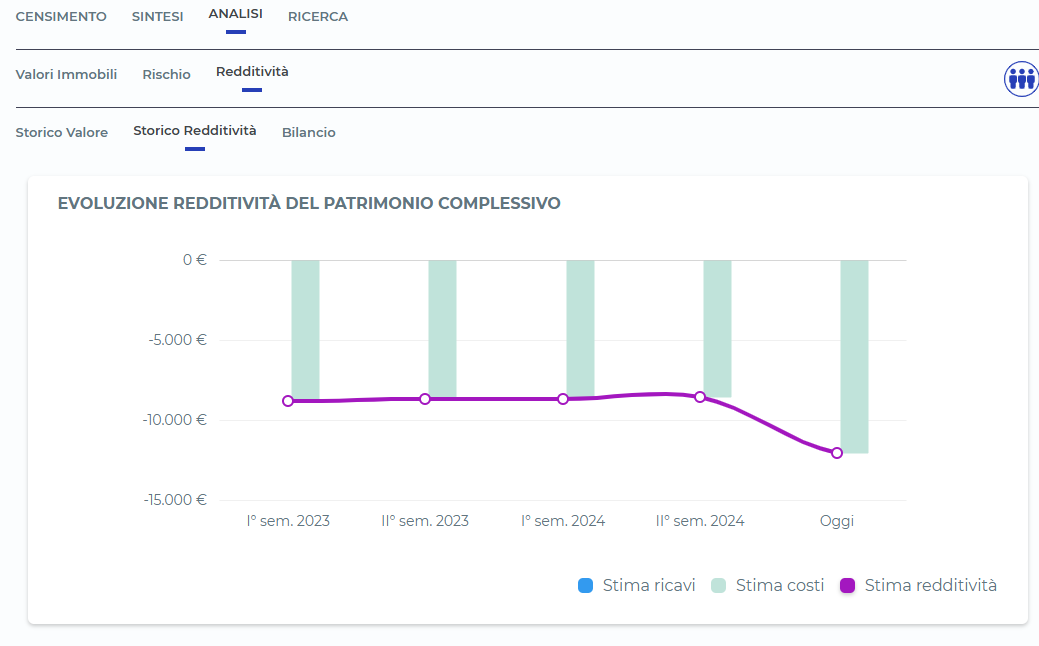 A questo si aggiunge l’analisi della redditività. Synvestia esamina i valori storici degli immobili, la redditività storica e il rapporto tra costi e ricavi, permettendo di capire non solo quanto vale un bene, ma quanto rende e come ha performato nel tempo. È un passaggio fondamentale per supportare decisioni informate: mantenere, valorizzare, dismettere o riorganizzare il patrimonio.