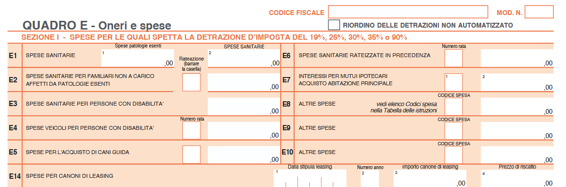 Nel caso di più eventi occorre compilare più righi da E8 a E10 riportando in ognuno di essi il codice 14 e la spesa relativa a ciascun decesso.